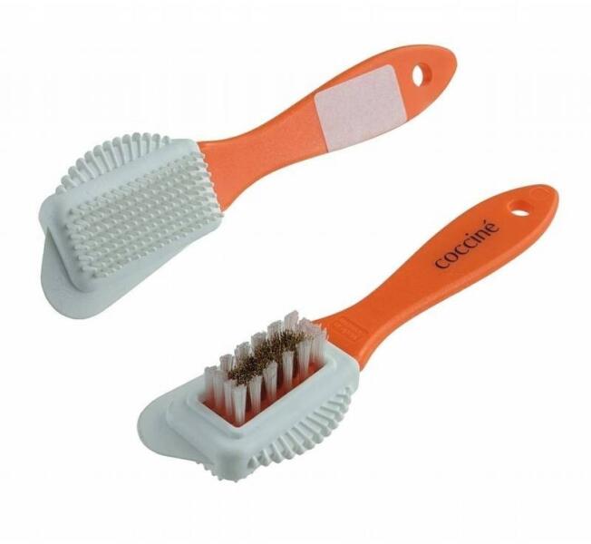 Kétoldalas kefe velúr és nubuk felületek tisztítására. Tökéletesen ápolja a bőrt, és biztosítja annak hibátlan megjelenését és tisztaságát. Szintetikus és sárgaréz sörtékből készült, precíz tisztítást tesz lehetővé.