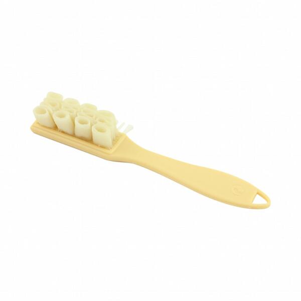 A cipőkefe egyik oldalán hosszú, mikroszálas sörték, a másik oldalán természetes gumi "sörték" helyezkednek el. Finoman tisztítja a velúr és nubuk felületeket. A használat során fokozatosan távolítja el a szennyeződéseket.
